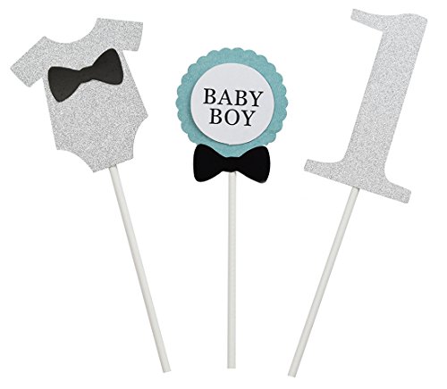 Brcohco 1st First BABY BOY Birthday One Cake Topper Decoration 3in1 Silver Glitter