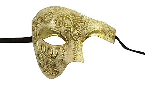 Mens Phantom of the Opera Masquerade Mask - Gold Lining