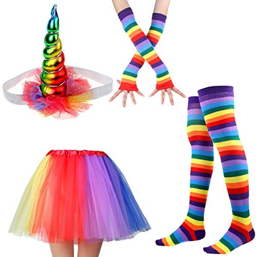 -. Title : IETANG Women's Rainbow Long Gloves Socks and 3 Layered Tulle Tutu Skirt Party Accessory Set