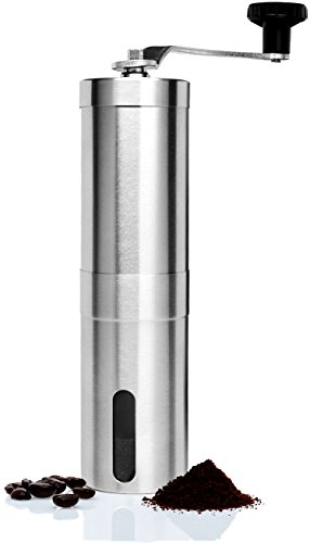 Description: Our premium manual coffee grinder lets you make gourmet coffee from the comfort of your home. Everyone loves the smell of fresh coffee in the morning. Coffee means a rise of a new day, quality time with your loved ones. That's why your mornings deserve the best coffee there is...and that coffee only comes from fresh ground coffee beans. Fresh grounds haven't had time to deteriorate through oxidation. As a result, the fresher the grounds, the wilder the flavors and the more intense the aromas. It's the reason why fresh ground coffee tastes so much better than the pre-ground stuff that people usually drink. Grounding your own coffee beans also means you can fully personalize your coffee using the mixtures that you love. Our coffee grinder is beautifully designed from high quality stainless steel so it will last for a long time. It's equipped with variable grind and will crush the coffee beans to any consistency to suit your requirements. The manual design makes 90% less noise than electric grinders which is perfect for making fresh ground coffee in the morning. And its simple to use, no cables, no power plugs, no batteries. Use it anywhere and anytime. Perfect for traveling, hiking and camping so you can enjoy great tasting coffee wherever you are. FEATURES AND BENEFITS: - EASY TO USE AND CLEAN - ULTIMATE AROMA FROM MANUAL HAND GRIND BEANS - TRAVEL FRIENDLY - NOISELESS - SUPER ADJUSTABLE - HIGH QUALITY DESIGN - ULTRA DURABLE - PERFECT GIFT for any occasion, wedding,shower, hostess, housewarming, birthday and other holiday gifts! 100% MONEY BACK GUARANTEE - If you're not completely satisfied with our product we'll provide you with a complete refund! No questions asked 100% money back guarantee so you have nothing to lose and EVERYTHING to gain. Supplies are limited, so get your coffee grinder NOW.Feature