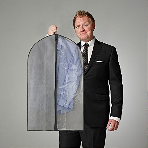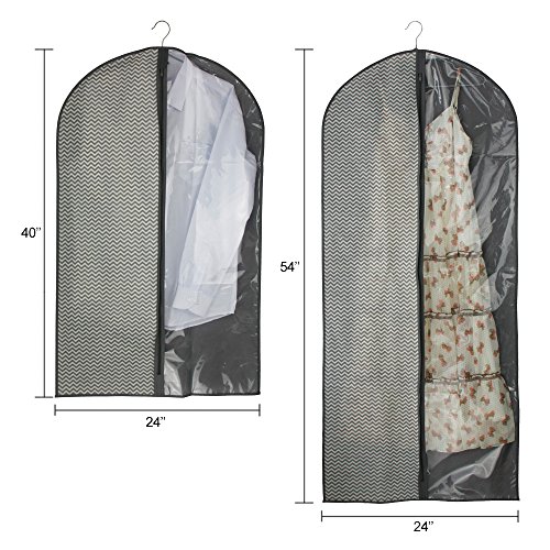 -. Binding : Kitchen -. Brand : Homyfort -. Feature : KNOW WHAT'S INSIDE: the clear part eliminates needing to guess what's inside the garment bags. / SMART TRAVEL:Conveniently hook a hanger through the metal eyehole and fold the bag in half for trouble-free travel. / BUILT TO LAST: A reinforced zipper & hanger opening ensure this suit carrier will last a lifetime. / DIMENSION:2pcs 40" X 24"and 1pcs 54" X24". -. IsAutographed : 0 -. Label : Homyfort -. Manufacturer : Homyfort -. ProductGroup : Home -. ProductTypeName : HOME -. Publisher : Homyfort -. Studio : Homyfort -. Title : Homyfort Garment Bag Cover Storage For Suit Dress Clothes Travel With Full Zipper Clear Window Set Of 3 Grey Stripe