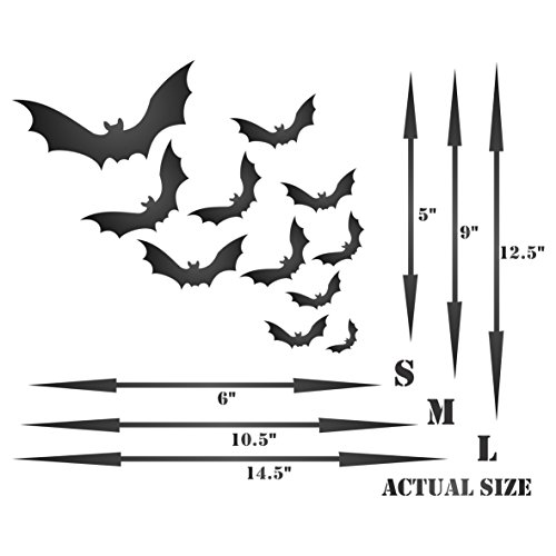 Halloween Bats Stencil (size 5.5"w x 4.5"h) Reusable Stencils for Painting & Holiday Project Ideas - Use on Walls, Floors, Fabrics, Glass, Wood, Cards, and More...