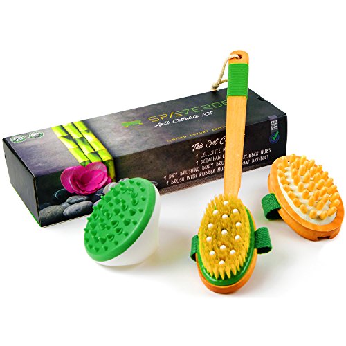 Cellulite Massager and Remover Brush Mitt Set - Anti Cellulite Massager, 100% Boar Bristle Dry Brush and Cellulite Brush - Get Rid Of Cellulite Naturally -...