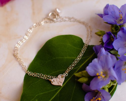 -. Binding : Jewelry -. Brand : Efy Tal Jewelry -. Department : womens -. Feature : Specify Your Initial in the 'GIFT MESSAGE' field. (Select gift option at checkout) / Sterling Silver Bracelet is one piece of chain that doubles up on your wrist to measure approximately 7". Let me know if you need a different length. / Dimensions: Heart is 1/2" x 1/4'' (10mm x 5mm) / Materials: Sterling Silver / Description: Dainty Heart Initial Bracelet- Sterling Silver -. Label : Efy Tal -. Manufacturer : Efy Tal -. Model : silver wraparound heart initial bracelet -. ProductGroup : Jewelry -. ProductTypeName : FASHIONNECKLACEBRACELETANKLET -. Publisher : Efy Tal -. Studio : Efy Tal -. Title : Custom Sterling Silver Dainty Heart Initial Bracelet - Small Delicate Monogrammed Heart