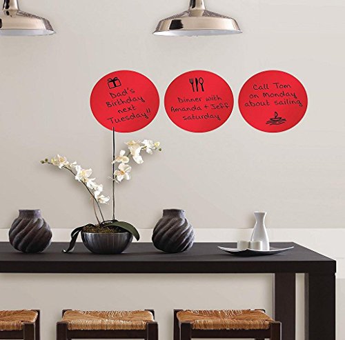 Studio : MORECOME Publisher : MORECOME Product Description Feature: Dimensions: Measures 3" wide by 14.625" long by 1.625" tall/deep Material: 100% vinyl Care Instructions: Wipe with damp towel Package Content:3PC Peel Stick Calypso Dry-Erase Dots with Marker Bring these beautiful Caribbean blue dry-erase wall decals to your space and make it your own with personalized messages and drawings! Calypso Dry-Erase Dots contain 3 pieces that are 13" in diameter and include a Dry-Erase Marker. Dry-Erase Dots are repositionable and totally removable. 0