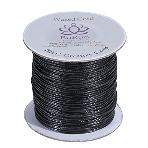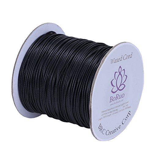 Boruo Brand 1mm Waxed Cotton Cord Beading Cord Waxed String Wax Cording Cord for Jewelry Making and Macrame Supplies 100 Yards Roll Spool Black Color with Acrylic Jar