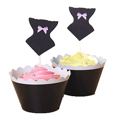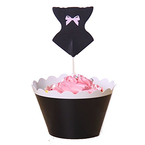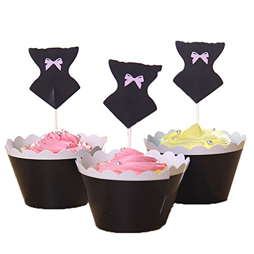 BETOP HOUSE Set of 12 Bikini Set Lady Dress Cake Cupcake Topper Kit for Beach Party Baby Shower (Black)