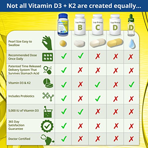 NBC TV SHOW THE BIGGEST LOSER VITAMIN D3 5000 IU & VITAMIN K2 + PROBIOTICS - 90 DAY SUPPLY - SUPERIOR CALCIUM ABSORPTION STRENGTHENING YOUR HEART AND BONES - L. ACIDOPHILUS & L. PLANTARUM