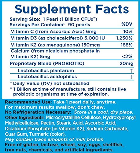 Michael Holick, MD, Phd, one of the world's leading vitamin D researchers and author of a book titled The Vitamin D Solution made the following important statement, "Vitamin D is not only the most common nutritional deficiency in the world, but it is also the most common medical condition, affecting at least one billion people." Moreover, did you know 70% of your health starts with your gut? Even if you are eating all the right foods, your body most likely lacks the good bacteria in your intestinal tract to absorb the vitamins and nutrients you are eating. The Biggest Loser, a popular NBC television show and lifestyle brand focused on achieving long term health and wellness has teamed up with Earth's Pearl to bring you the best Vitamin D3 and Vitamin K2 + Probiotic, with its patented delivery system that will greatly enhance the successful delivery of vitamins and live bacteria (the good guys), right to your digestive tract. Able to survive your harsh stomach acids, our live bacteria will conquer the bad bacteria and help you improve your immune system and digestive health. Gut flora is essential to helping you perform at your best, and our once daily probiotic can go with you wherever you go because there is no refrigeration needed. Finally, your search for the perfect Vitamin D3 K2 + Probiotic is over! Not sure if our product will work for you? We are so confident you will love our Vitamin D3 K2 + Probiotic that we will give you 365 days to try it out and make sure it works for you. If for whatever reason, you are not satisfied we will refund your purchase, no questions asked. Don't you wish more of life's important decisions were like that? The Biggest Loser Vitamin D3 and Vitamin K2 + Probiotic Pearls are made in the USA, are Non-GMO, free from lactose and gluten and are safe for the whole family. *May contain traces of milk Protein.*