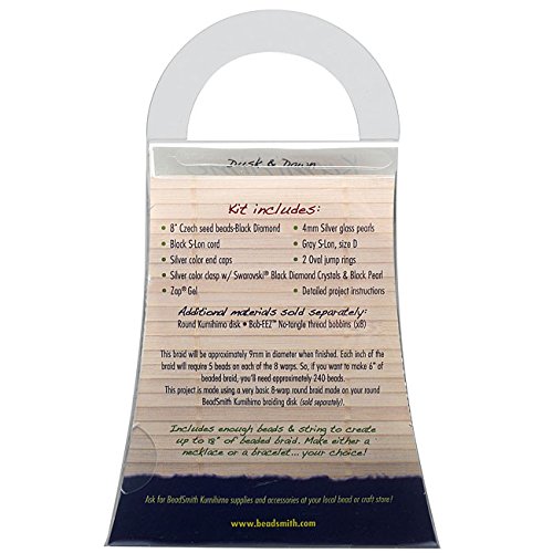 Kumihimo jewelry kit provides the supplies you need to get going on your first Jewelry making experience!! It includes the following: 8" Czech seed beads silver color end caps, silver color clasps with Swarovski with crystals, detailed project instructions, S-Lon cord, 2 oval jump rings, and zap gel. Everything you need to make up to 18" of beaded braid!Feature