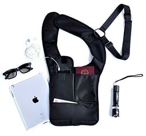 -. Title : 多機能 ボディバッグ 大量ポケット シークレット ショルダー バッグ 収納 防犯対策 海外 旅行 ジャケット 内側 に 装着 できる ブラック (左肩用)