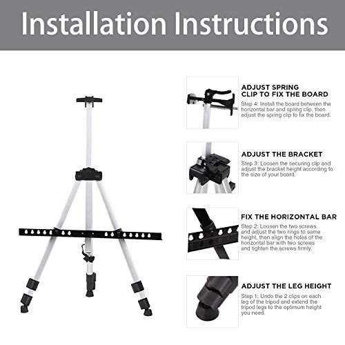 Ohuhu Aluminum Field Easel with Bag, 21 to 66-Inch Adjustable Height for Table-Top/Floor (OH-82003-02)
