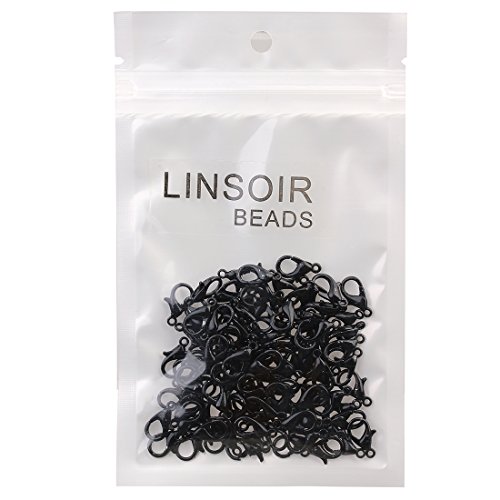 Linsoir Beads Lobster Clasp 100pcs/bag Alloy Jewelry Claw Clasp Finding 12mmX6mm Black Plated