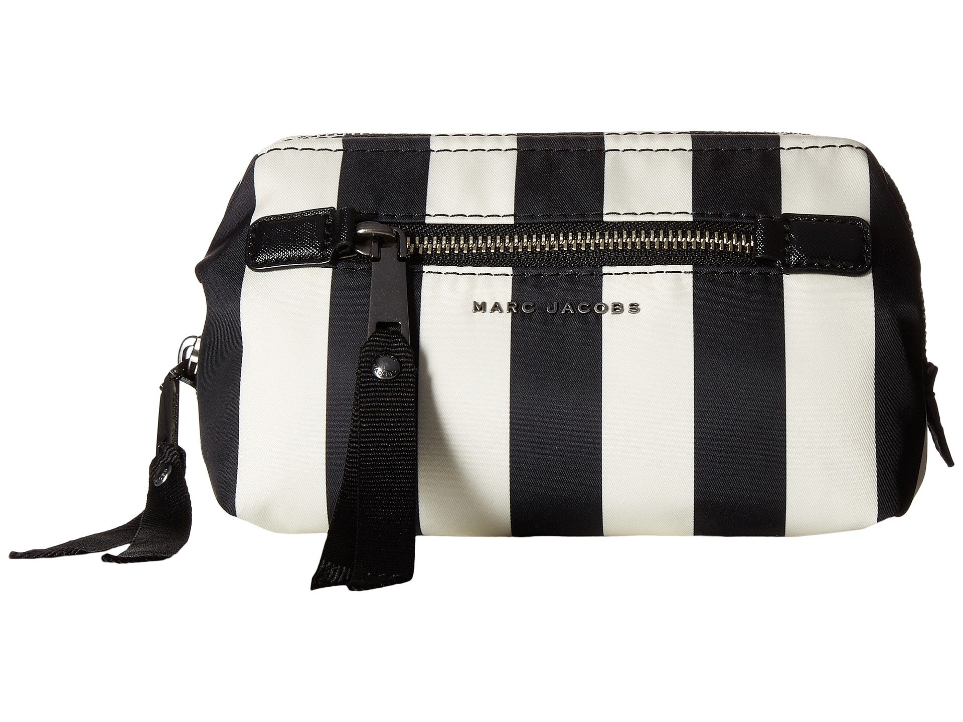 | Product Information SKU: #8916481Keep your essentials at hand for a quick refresher with the Marc Jacobs? Stripes Printed Trooper Framed Big Bliz Cosmetic Bag.Cosmetic bag made of 100% nylon in a decorative striped design.Top zip closure with decorative pull tassels. Brand name featured at front with zipper pocket for added storage. Flat base to provide upright structure. Spacious lined interior. Imported. This item may ship with an attached security tag. Merchandise returned without the original security tag attached or a damaged tag may not qualify for a refund.This product may have a manufacturer's warranty. Please visit the manufacturer's website or contact us at warranty@support.zappos.com for full manufacturer warranty details.Measurements: Bottom Width: 6 3?4 in Depth: 5 in Height: 4 1?2 in Weight: 5 oz |