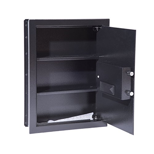 HomCom Flat Recessed Fingerprint Digital Home Security Gun Cash Wall Safe Box