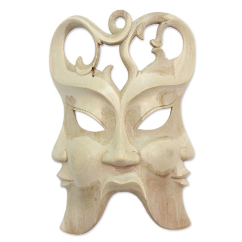 NOVICA Decorative Modern Hibiscus Wood Mask, Beige, 'In Three Directions'