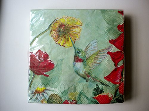 -. Feature : Hummingbird Cocktail Napkins Set of Two / Size: 9 7/8" x 9 7/8" Opened / 40 - 3-ply Napkins / Biodegradable / Water-based Colors