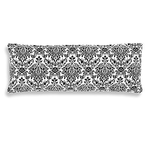 Microfiber Body Pillow Cover Case, 20 x 54 Inches, Decorative Black & White Damask Print