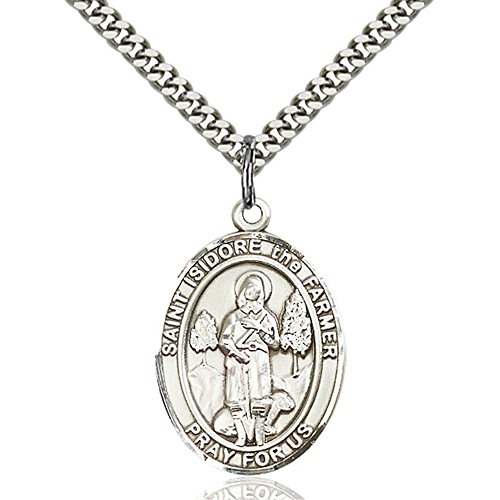 Sterling Silver St. Isidore the Farmer Pendant Silver-Plated Base Metal 24-inch Heavy Curb Chain All Bliss products are 100% handmade in the United States at every stage of production, and come with a lifetime guarantee.