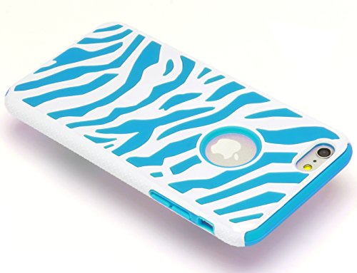 iPhone 6 Plus Case, Bastex Heavy Duty Hybrid Protective Case - Soft Blue Cover with White Zebra Design Hard Shell for Apple iPhone 6, 5.5 Plus