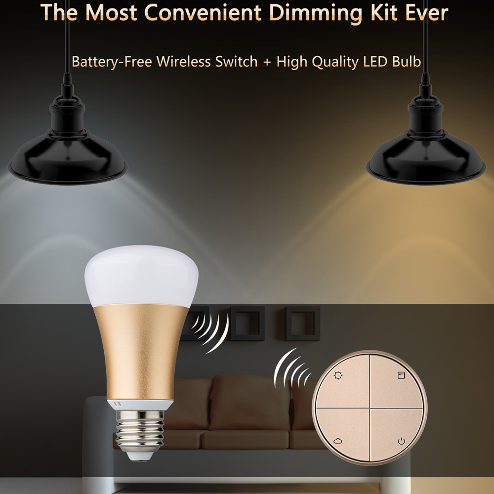 • Each dimming kit includes one LED bulb and one portable battery-free dimming switch which powered by your touch.