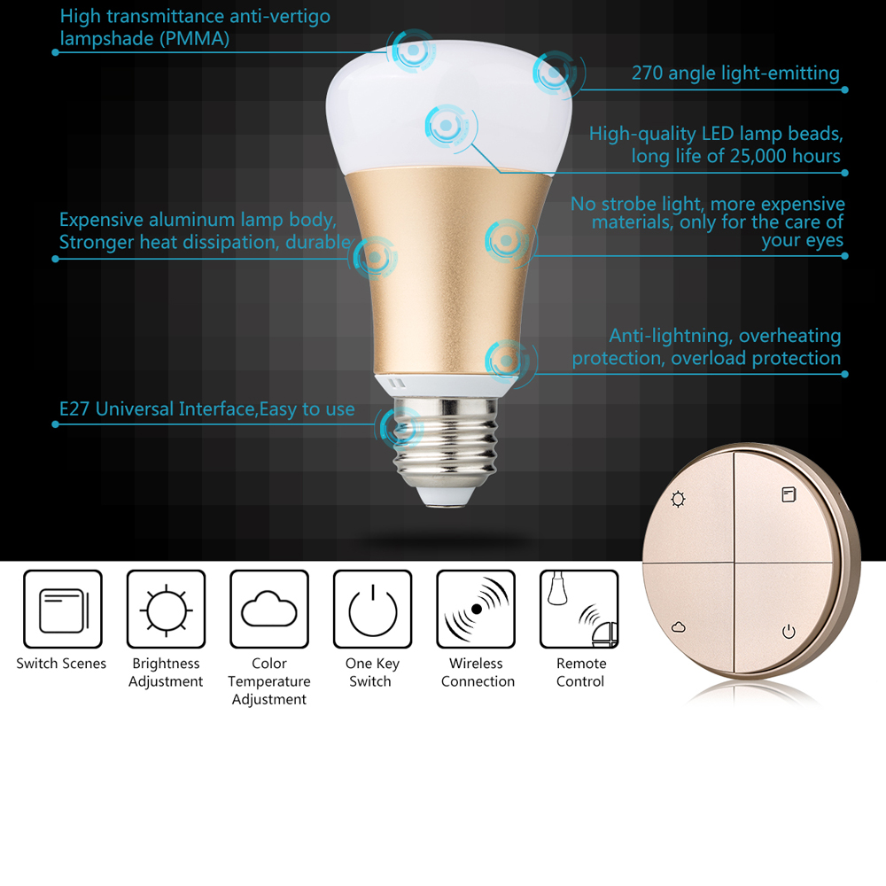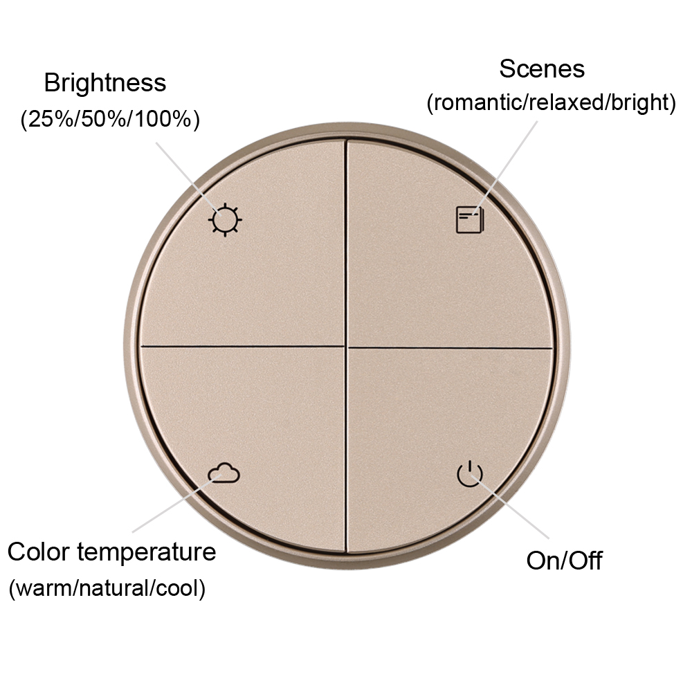 • 4 Buttons:On/Off,scenes(night light,daylight,full bright),brightness,color temperature