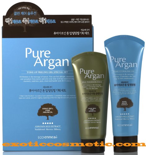 -. Feature : If skin looks dark after cleansing or if you feel your makeup with poor adhesion due to its roughness and coarseness, it's more important to remove old skin cells though mild feeling and constant massage rather than to apply product with good nourishment and moisturizing ingredients. / It's also important to tighten pores to recover vibrant skin rhythm and provide a healthy and clean surface. / PURE ARGAN TONEUP PEELING GEL is applied to skin mildly and gently with powerful adhesion to remove sebum and old skin cells unnecessary on skin surface, and to transform rough skin into smooth and luminous one. / PURE ARGAN REAL CLEANSING FOAM completely! removes makeup residues gently with its soft and rich foams when rolling and thoroughly! empties skin waste left, and to prevent skin dryness which may be felt after cleansing purity 100% argan oil delivers powerful hydration and fully provides nourishment to relieve stress skin suffer from all day long and to keep skin healthy and vibrant. / Peeling Gel 120g & Cleansing Foam 80g