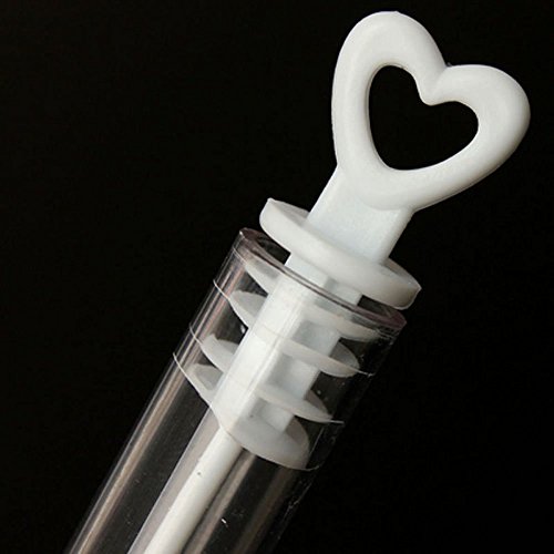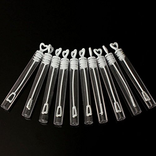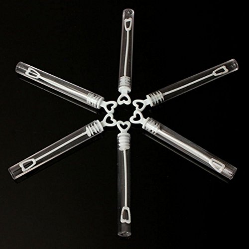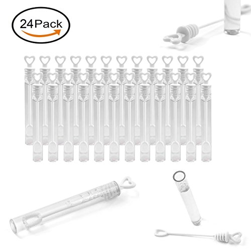-. Feature : Each plastic bubble tube is topped with red hearts and contains; / Great for wedding favor. Heart-shaped cap; / Romantic and elegant,make you have a beautiful memory,Kids children favor birthday party toys; / Material: Plastic Non toxic, will not stain,Color: Clear; / Package including : 24ps Tubes (Bubbles Water is NOT included);