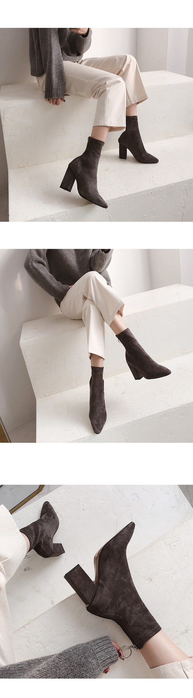 비비드한 컬러와 모노톤의 컬러들로 구성된 하이힐 앵클부츠입니다.