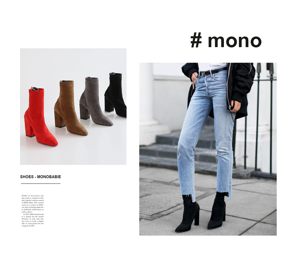퍼펙트하게 스퀘어진 굽이 안정감을 더해주고 빽 사이드 오링 지퍼가 손쉬운 오픈클로징을 보여주는 아이템입니다.