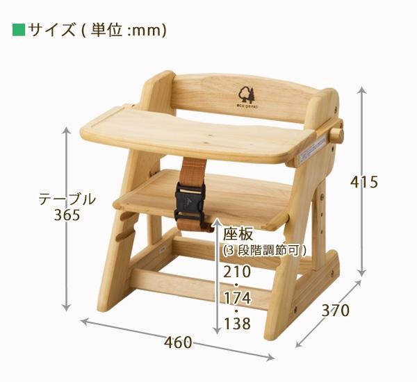 | 仕様 | 対象年齢:6か月~(おすわりできるようになってから) 耐荷重:40kg 座面高さ3段階調節可 組立式 |