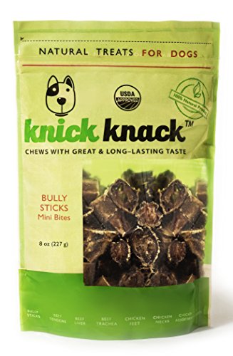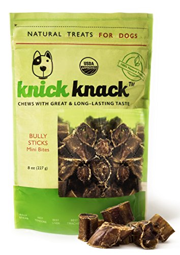 -. Title : Bully Sticks Bites 8oz Natural Dog Treats, Beef Chews, Fully Digestible, No Preservatives or Additives, Low Fat High Protein Single Ingredient Dog Dental Chews by Knick Knack, USDA-Approved