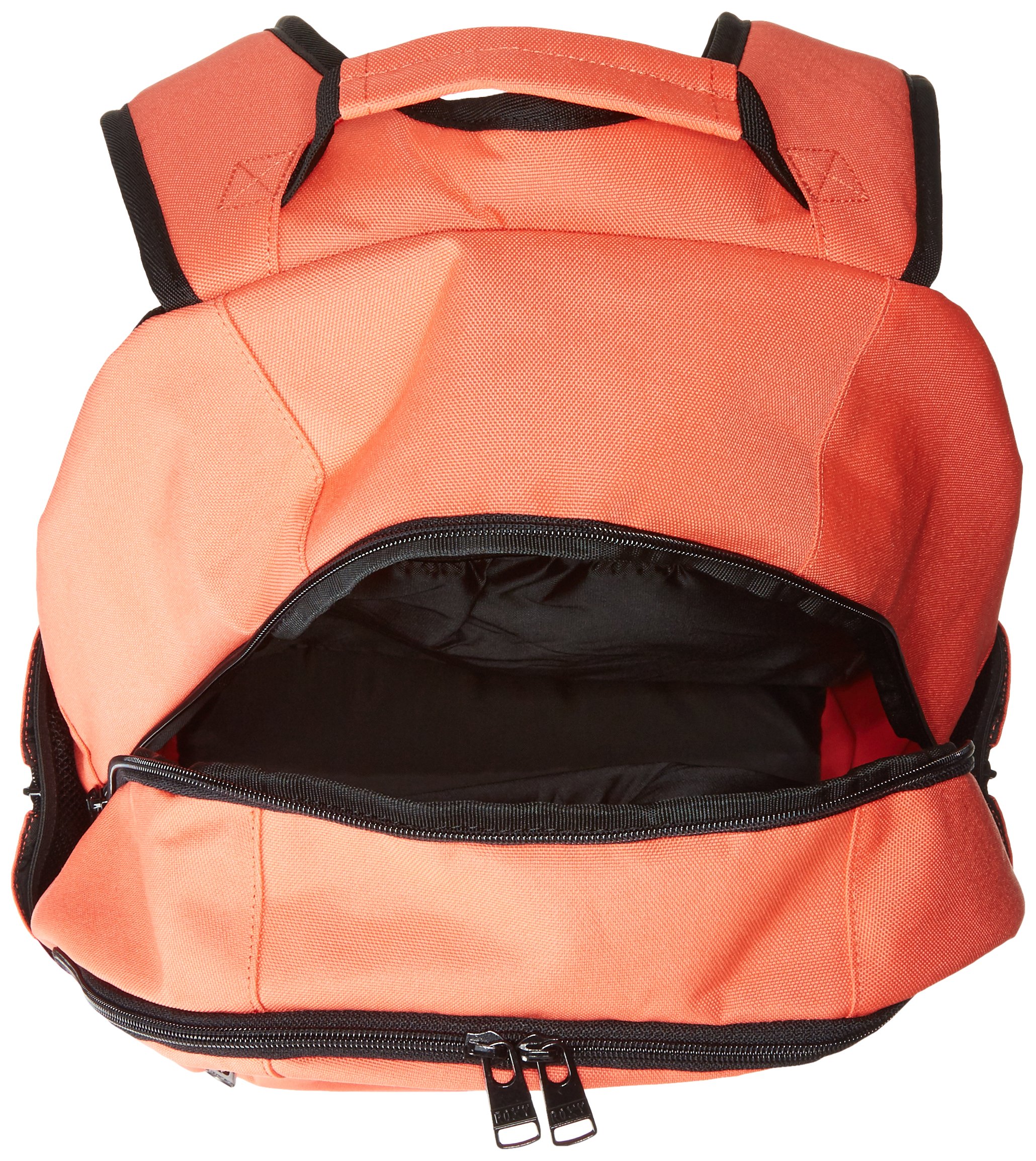 The brand logo of 3D embroidery applied to the out pocket is an accent backpack.