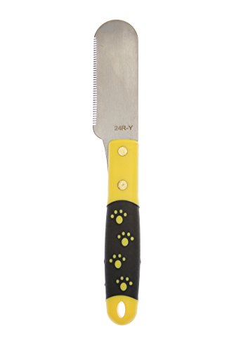 Product DescriptionHello pet stripping Knife with 40 fine teeth, ideal for cleaning up blending overall, and a soft grip Yellow rubber handle.0