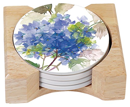 CounterArt Multi Hydrangea Absorbent Coasters in Wooden Holder (Set of 4)