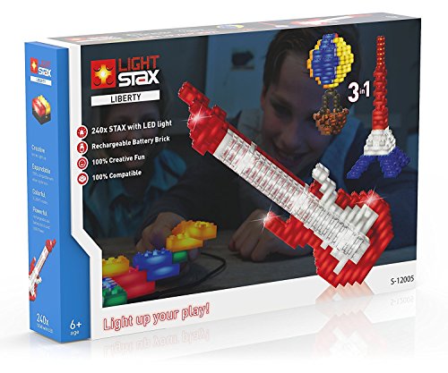 -. Feature : This huge Liberty Set contains blocks that are compatible with L.E.G.O® sized bricks / Set includes: 240 bricks (8-peg size and 4-peg size), 1 rechargeable battery pack, and 1 USB cable / Each block lights up as you link it to any block connected to the power source / Sound activation base; 100% compatible with other building blocks of similar size / For ages 6 years old and up