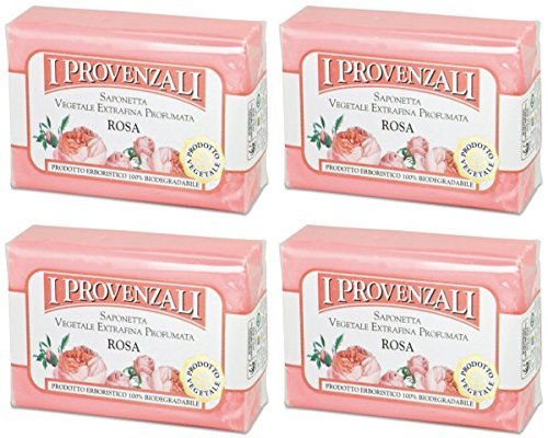 I Provenzali: "Rosa" Vegetable Perfumed Soap, Rose Scent 3.5 Ounce (100g) Packages (Pack of 4) [ Italian Import ]