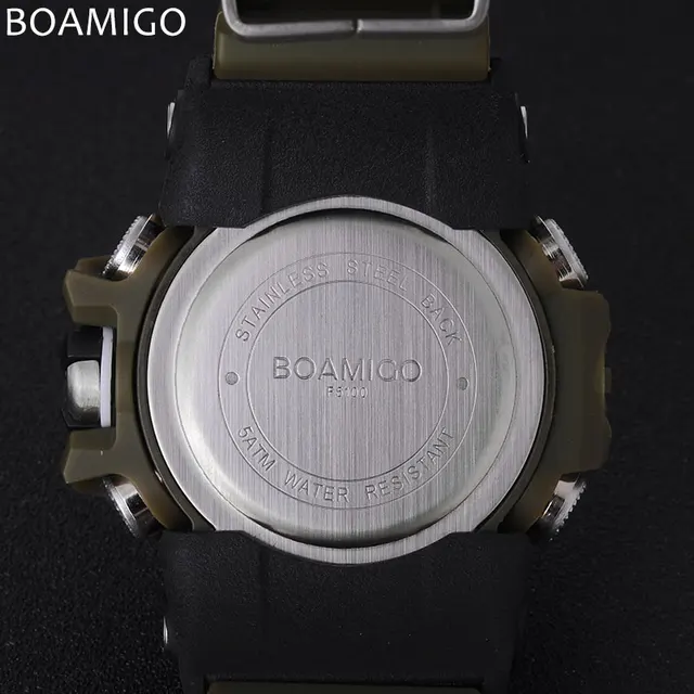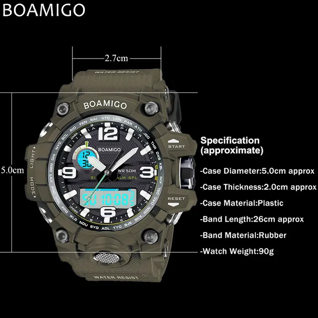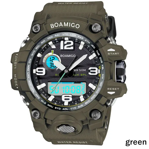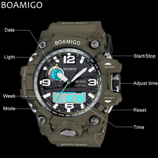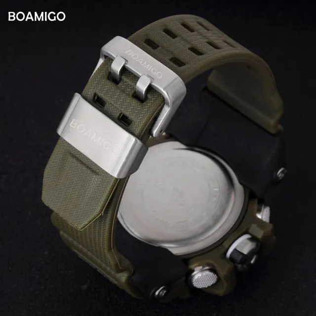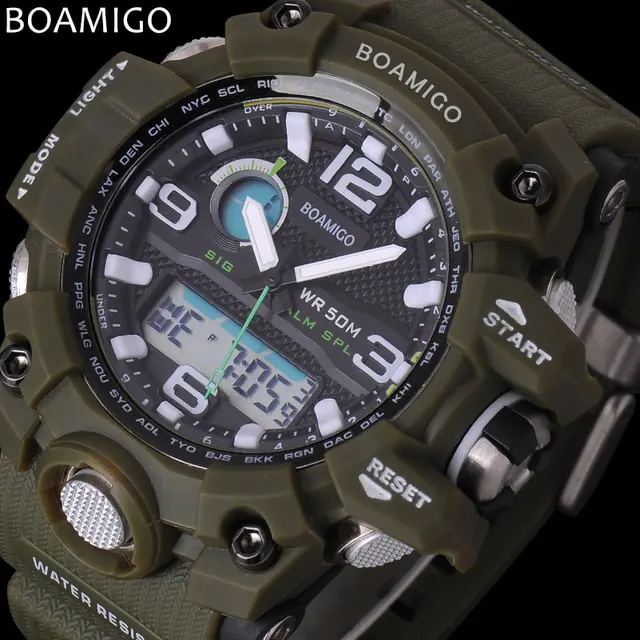 | [해외] BOAMIGO 브랜드 남성 스포츠 시계 듀얼 디스플레이 아날로그 디지털 LED 전자 석영 손목 방수 수영 군사 시계 |
