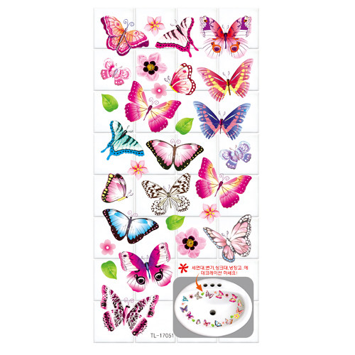 【商品编号】TL-17051 【商品产地】韩国原装进口 【商品材质】防水PVC 【单张尺寸】10.5厘米×21厘米(一套2张,标价是一套的价格)(对厘米没有概念的亲,可以拿一张银行卡,长那边是8.5厘米,可以以此为参考!) 【注意事项】请勿放入口中,不可粘贴于长期高温环境! 【产品特性】采用高端环保防水PVC材质制成的专用家居装饰产品,单面效果,仿瓷凹凸纹理质感,手感非常好,推荐!一套总共有2张,每张上面的图案都是可以分开贴的!色彩鲜艳明快,防水耐温防霉,脏了可以用湿布擦洗,粘贴于光滑表面可反复使用! |