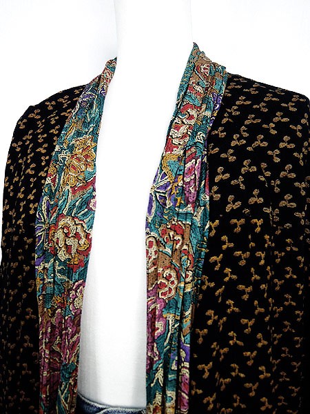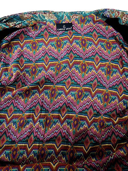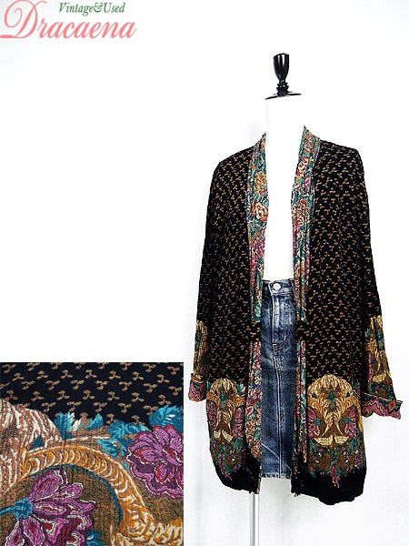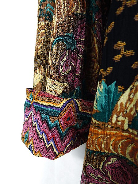 Ladies ブランド- カラー黒ベース・カラフル・茶 メール便不可 コンディション★★★ 素材記載なし 表記サイズ記載なし スタッフコメント裏地あり。右袖上部に擦れ感あり。 実寸サイズ 着丈 83.5 cm 身幅 59 cm 肩幅 58 cm 袖丈 51 cm ※ウエスト・ヒップ以外は平置き採寸
