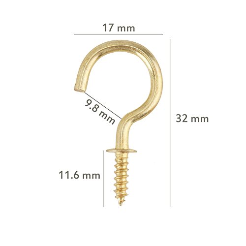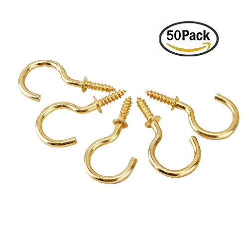 Yarssir 50PCS Brass Plated Ceiling Cups Hooks Screw Hooks for Hanging 7/8" (Gold)