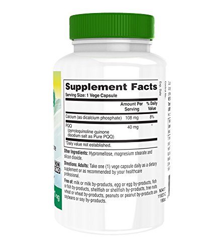 Your Mitochondria Needs CoQ10! Does It Also Need PQQ? The latest answer seems to be a resounding YES, Your Mitochondria Needs PQQ! Researchers are convinced that PQQ, (Pyrroloquinoline Quinone), plays a critical role in the growth and development of mitochondria throughout the body, even the brain. PQQ has a unique ability to stimulate cell-signaling pathways involved in cellular energy metabolism plus, mitochondrial function and development. In fact, PQQ is key in enabling cells to undergo spontaneous mitochondrial biogenesis. Biogenesis is the production of new living organisms or structures within individual cells. Spontaneous mitochondrial biogenesis, initiated by PQQ, is essential for human health and longevity. Other Ingredients: Hypromellose, magnesium stearate and silicon dioxide. Free of: Milk or milk by-products, egg or egg by-products, fish or fish by-products, shellfish or shellfish by-products, tree nuts, peanuts and peanut by-products, wheat or wheat by-products, soybeans and soybean products. Directions: Adults: Take one (1) daily with a meal as a dietary supplement or as recommended by your healthcare professional.Feature