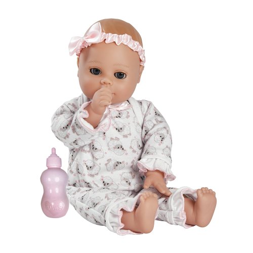 - Feature : Perfect "1st" baby doll at 13" inches made of baby powder scented vinyl / Love Ewe comes dressed in a soft knit lamb printed onesie sleeper with light skin and blue eyes / 100% machine washable for good "clean" fun! / Comes with Adora feeding bottle and can suck it's thumb / Perfect toy for kids for ages 1+