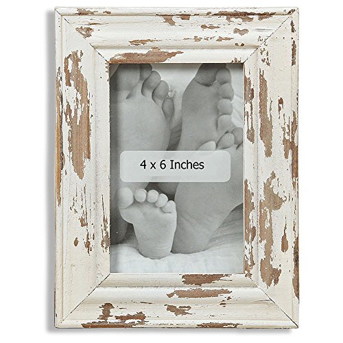 The Cape Cod Chippy Photo Frame, Rustic Bevels, Creamy White, Time Worn Distressed Finish, 6 1/4 x 8 1/4 Inches For Table Top Or Wall Display, By Whole House Worlds