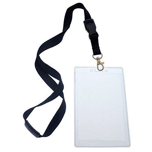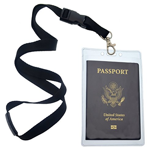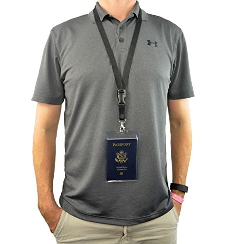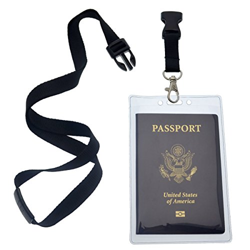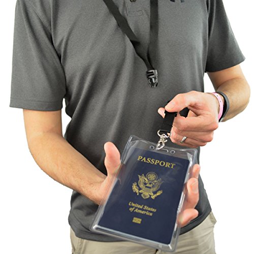 2 Pack - Clear Tear Resistant Passport ID Badge Holder with Open Top & Detachable Buckle Lanyard by Specialist ID (Black)