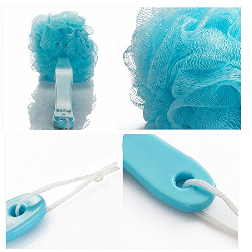 Material: Plastic handle, Blue Nylon Mesh Shower Brush Ball