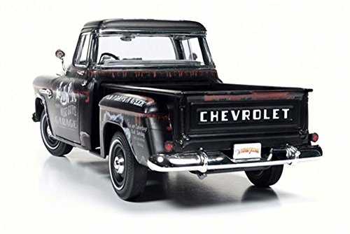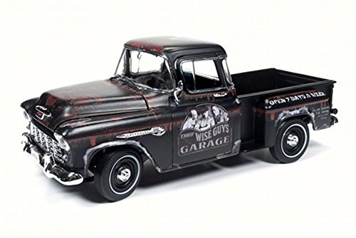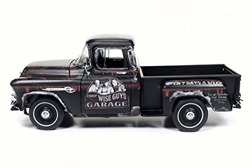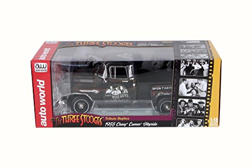 -. Title : Three Stooges 1955 Chevy Cameo Stepside Pickup Truck, Faded Black - Auto World SS115 - 1/18 Scale Diecast Model Car