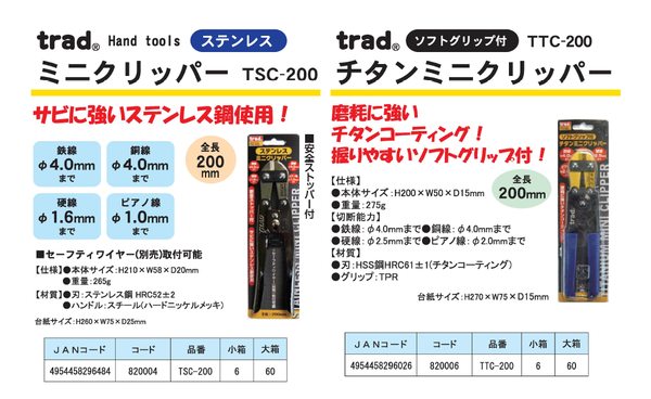全長200mm 切断能力:鉄線:4.0mmまで 銅線:4.0mmまで 硬線:2.5mmまで ピアノ線:2.0mmまで