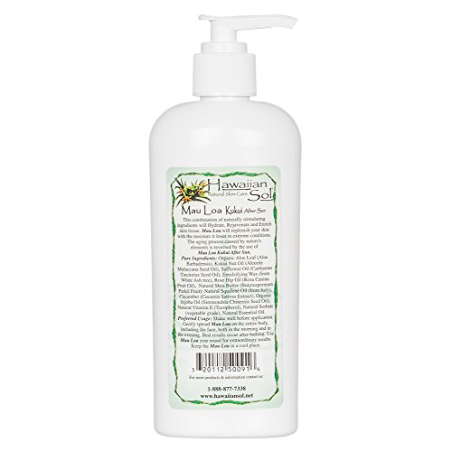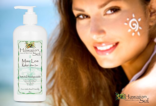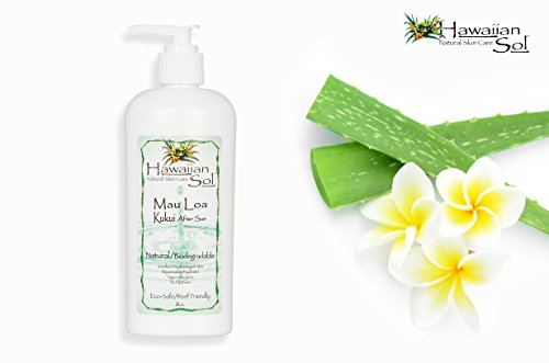 After Sun lotion is the most advanced formulation of Natural ingredients specifically combined to rejuvenate and revitalize skin tissue that has been exposed to nature's harshest elements such as the sun and wind. This rich, hydrating creme is to be used on the face and the entire body. This rich mixture of Kukui pod oil from Hawaii; Organic Sunflower extracts from the Caribbean; and a variety of tropical plant extracts that are known to heal the skin and give it renewed life, is to be used at least once daily, or after bathing. Mau Loa After Sun is an excellent moisturizing creme that should be used year round for younger looking, healthy skin and is biodegradable.