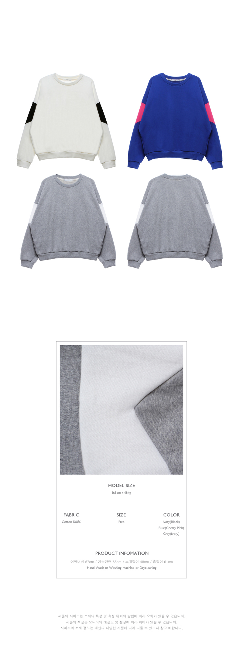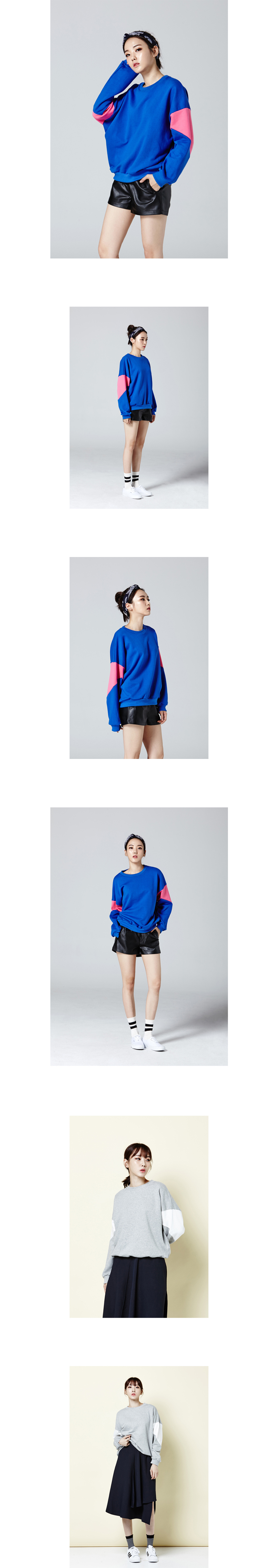 긴 소매와 루즈하게 떨어지는 라인의 맨투맨으로 유니섹스로 만들어져 커플로 입으실 수 있습니다.